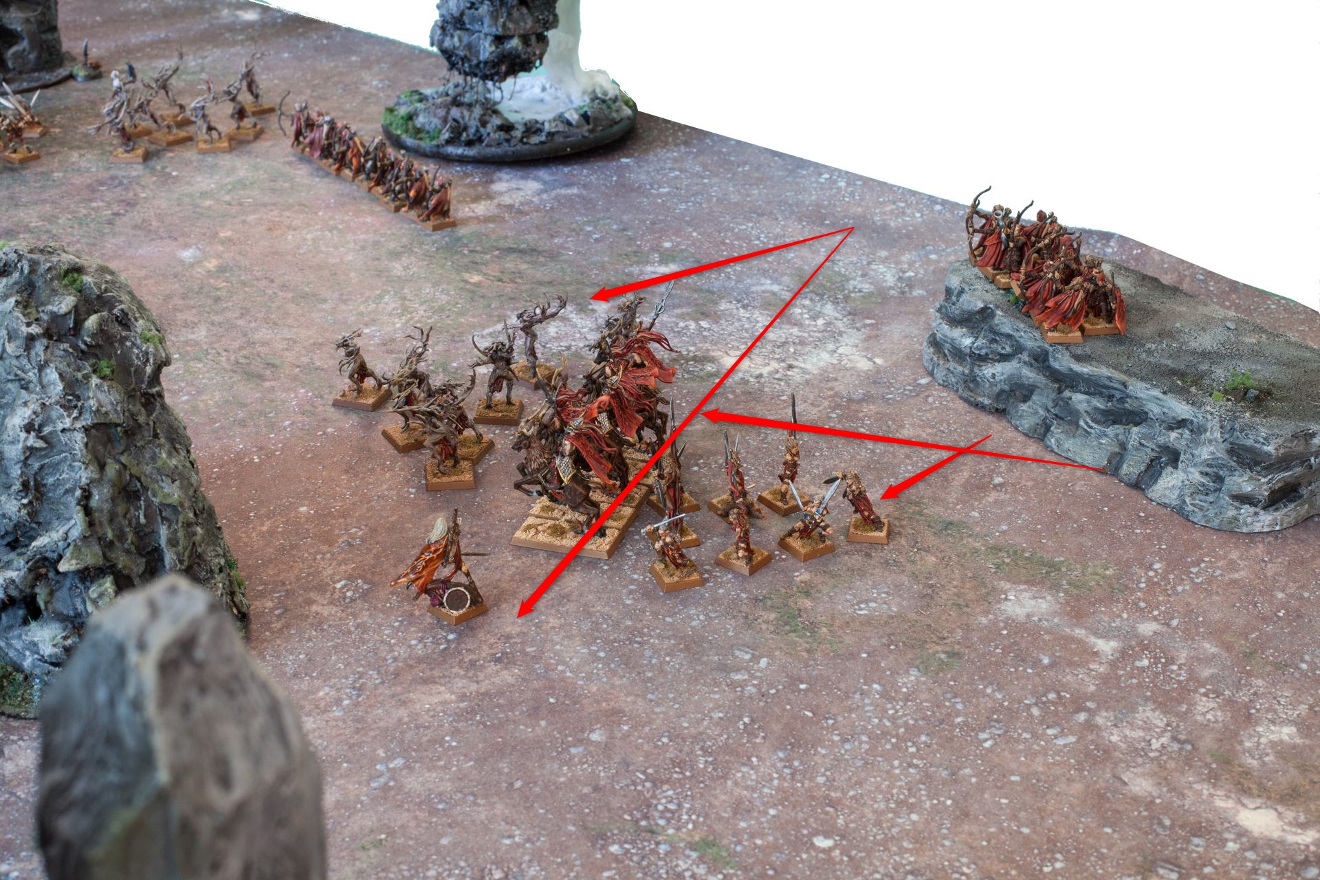 The Dryads and the Alter noble were the only units able to charge the exposed Stormvermin’s flank.