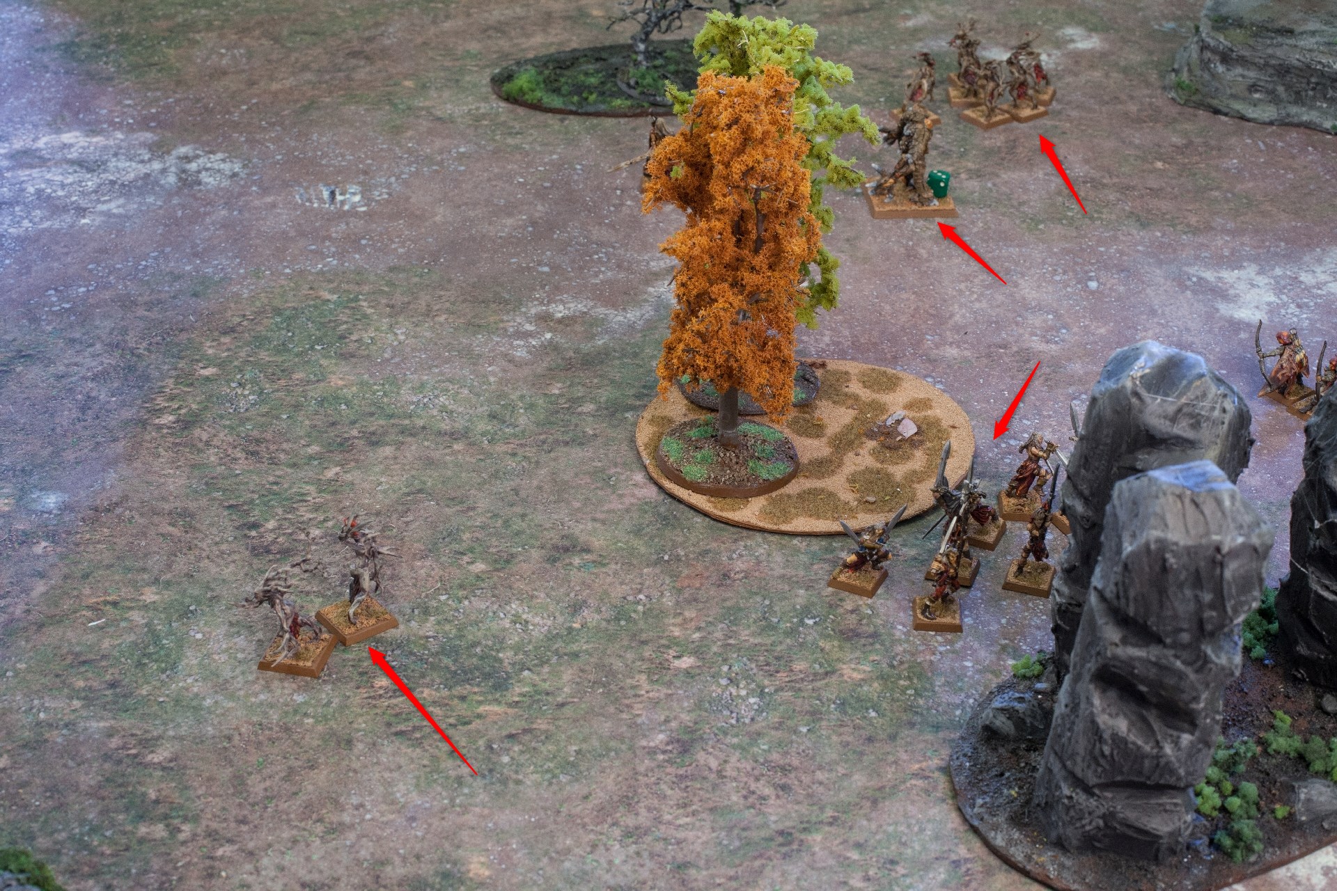 The Treeman managed to cast his bound spell at the forest occupied by the Jezzails, but was out of range, so no damage was inflicted.